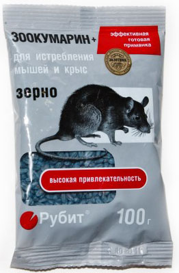 Родентицид от грызунов "ЗООКУМАРИН+ЗЕРНО" разработан для эффективной борьбы с крысами, мышами и всевозможными видами грызунов, в разных типах помещений, а также на сельскохозяйственных полях, на свалках, в жилых домах, на водоемах, канализационных коллекторах. Препарат готов к применению и нет необходимости в добавлении других кормов. При проникновении в организм грызуна этот препарат воздействует на синтез протромбина, что ведет к нарушению механизма кровесвертывания и провоцирует склонность к кровотечениям. Препарат очень хорошо привлекает грызунов и употребляется ими в пищу. Грызуны погибают на 4-5 день после употребления "ЗООКУМАРИН+ЗЕРНО", поэтому препарат не вызывает страх к приманке.